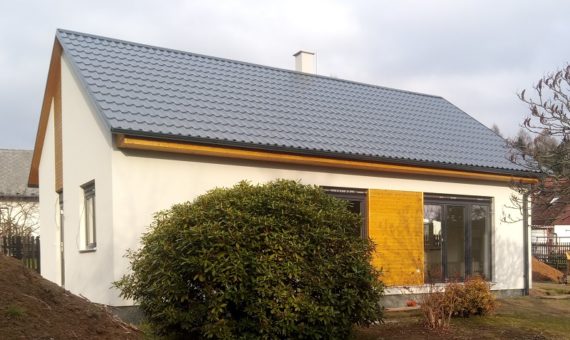 Dispozice domu je 2+kk na zastavěné ploše 65 m2.